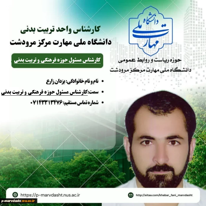 کارشناس امور فرهنگی، تربیت بدنی و مشاوره سلامت دانشجویی جناب آقای یزدان زارع 2