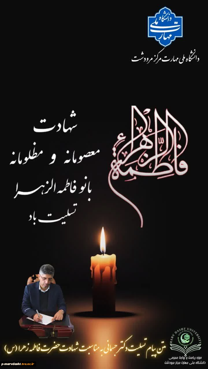 امتیاز دهید : متن پیام تسلیت دکتر جسمانی ریاست محترم دانشگاه ملی مهارت مرکز مرودشت جهت شهادت حضرت فاطمه زهرا (سلاماللهعلیها)، 2 شنبه 8 آذر 1404 ساعت 13:47